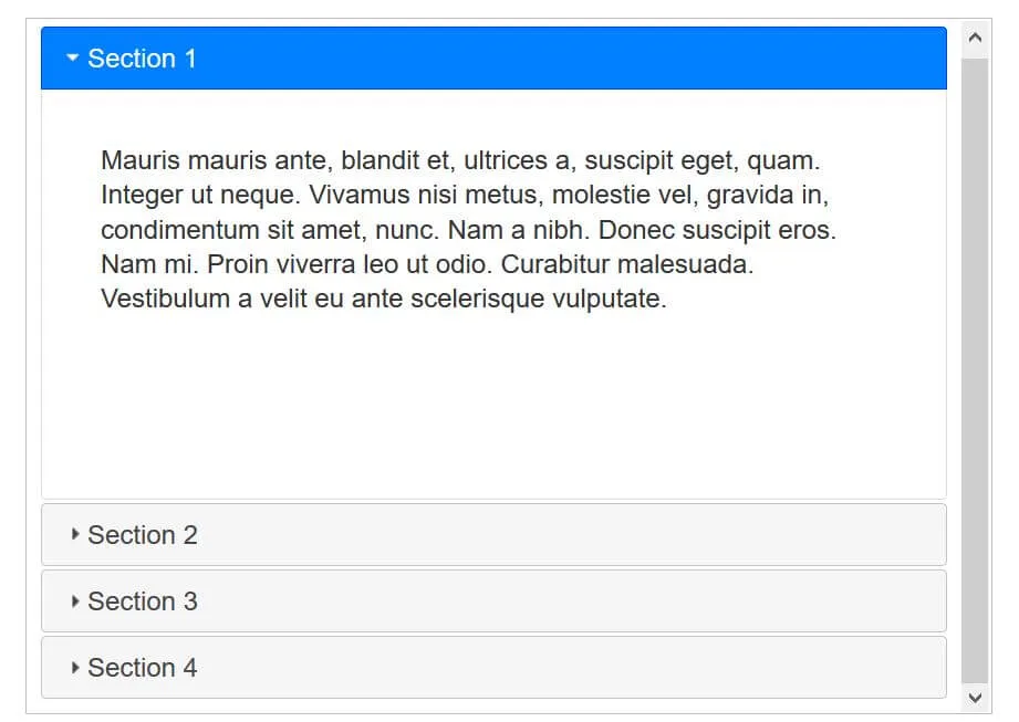 Your accordion built with the block editor might look like this